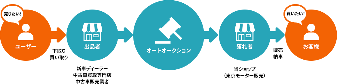 オートオークションとは、中古車を取り扱う業者を対象とした中古車市場です。